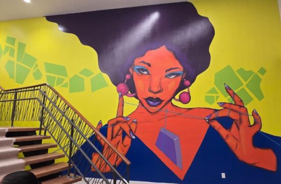 Painel “Onde a Linha Equilibra o Eu”, da artista paulistana Soberana Ziza, foi feito sob encomenda. - (Foto: Divulgação/Magalu) Conceito inovador da loja abre espaço para obras do principal museu de arte brasileira do mundo…
